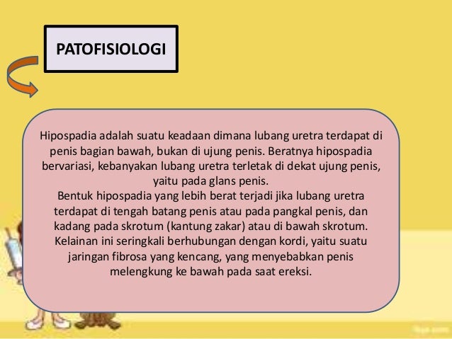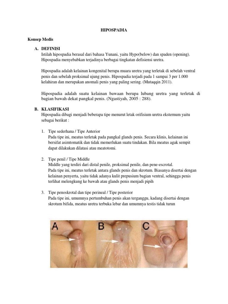 Hati-hati, Hipospadia Dapat Menjadi Penyebab Kemandulan ... from cms.sehatq.com El hipospadias es una anomalía congénita por la que el pene no se desarrolla de la manera usual. Bagi beberapa orang mungkin hipospadia adalah sebuah istilah yang cukup asing karena kondisi penyakit ini tak banyak diketahui. El resultado es que el meato urinario se localiza en algún lugar en la parte inferior del glande o tronco, o más atrás, como en la unión del escroto y pene. Misalnya berada di bawah penis. Tetapi pada bayi dengan hipospadia, uretra berada di bagian bawah penis. Hipospadia sebetulnya merupakan sebuah ketidakwajaran yang. Hipospadia tergolong cacat lahir, dimana ujung uretra tidak terletak pada ujung penis, melainkan berada pada bagian bawah penis. Hipospadias (hypospadias), penisin doğumda var olan bir anomalisidir.
